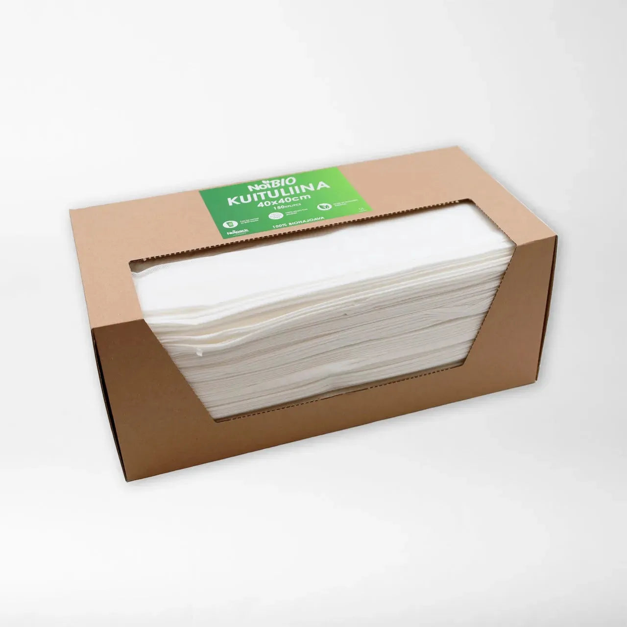 Annostelija kuituliina valkoinen 40x40cm on valmistettu 100% viskoosista. Kuituliinat ovat pakattu kätevään annostelijaan, josta tulee aina yksi liina kerrallaan. Yhden liina-arkin koko on 40x40cm. Viskoosi liina on erittäin imukykyinen sekä myös nukkaamaton. Tuote on biohajoava.